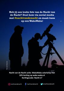 Onder alle inzendingen verloten we 12 WakaWaka’s! Niet gewonnen? Niet getreurd. Op de website van WakaWaka kun je ook zelf een solarlamp bestellen. Met de kortingscode nacht17 ontvang je bovendien nog eens 10% korting.